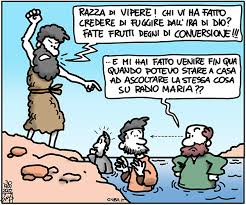 Come se adesso, in un’intervista, uno se la prendesse direttamente coi vescovi della CEI ed il collegio cardinalizio…. parlando di fede e di religione. Gli farebbero fare un TSO e lo sbatterebbero in psichiatria… ma il Battista non le risparmia a nessuno. Inoltre è così inclusivo… mette in guardia dal sentirsi a posto, sul carro dei vincitori, che dicono pigramente “abbiamo Abramo per padre” cioè siamo bravi, abbiamo sempre fatto i bravi, siamo nati bravi, religiosi, abbiamo fatto i chierichetti da piccoli, studiato in collegio dalle suore, frequentato l’oratorio dei salesiani, dato sempre una mano al parroco e fatto tante esperienze estive, vado a messa, recito le preghiere… insomma Giovanni vuole scardinare il curriculum da religioso che spesso usiamo come “comfort zone” e preparare il nostro cuore a un incontro dirompente. Quello che anche lui sarà costretto a fare quando Gesù stesso, suo cuggggggino, gli chiederà di battezzarlo nel Giordano, dopo esser stato in fila coi peccatori e con quella gente da cui spesso magari vorremmo stare distanti. Come è iniziato questo avvento? tra quanti giorni inizierai a dire che “ah io quest’anno Natale proprio non lo sento” oppure “già Natale? mi sarebbe piaciuto fermarmi, pregare, meditare, andare a riconciliarmi…” e se cominciassi stasera con qualcosa di nuovo da fare? è Lui che ci viene a prendere, non noi che lo mettiamo tra i nostri impegni…